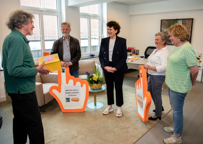 Het is fairtrade week. Venray is al 9 jaar fairtrade gemeente. Een mooie gelegenheid voor de Venrayse fairtrade werkgroep om de Burgemeester, mevrouw Kompier, tijdens het begin van de fairtrade week met een fairtrade cadeautje te verrassen.