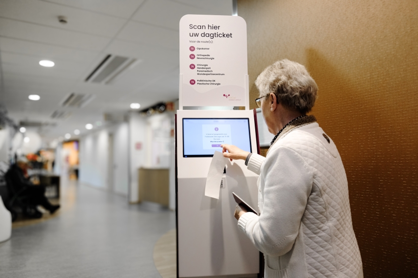 De tweede stap is het scannen van het dagticket bij de aanmeldzuil bij de afdeling waar de afspraak plaatsvindt. De patiënt is dan aangemeld voor zijn afspraak.