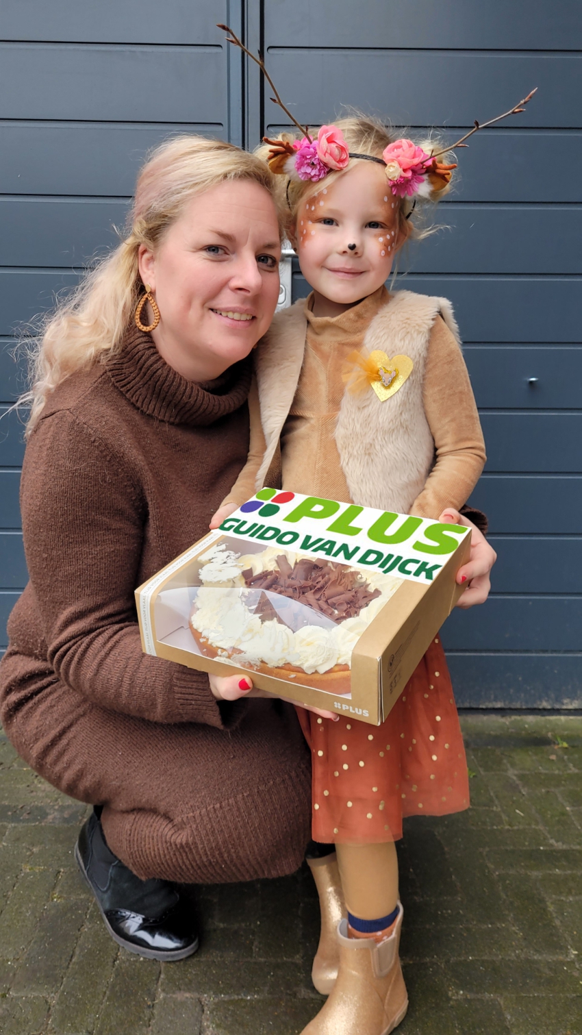 Toen we de vlaai weg brachten wilde de dochter maar graag laten zien hoe mooi mama haar geschminkt had.